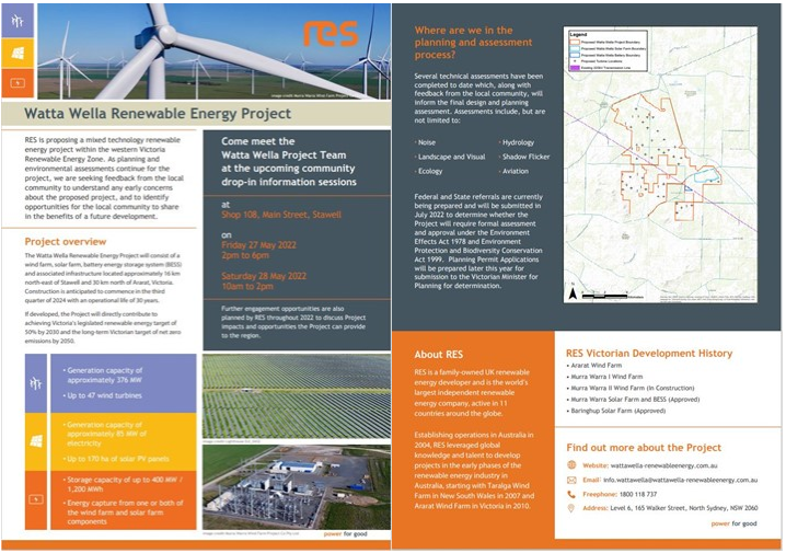 In May, the RES Project Team conducted two community drop in sessions in Stawell to share project information, provide updates on ongoing assessments, and seek feedback from interested members of the community on the proposed developments. If you missed these sessions - please visit the Contact us page to reach out.